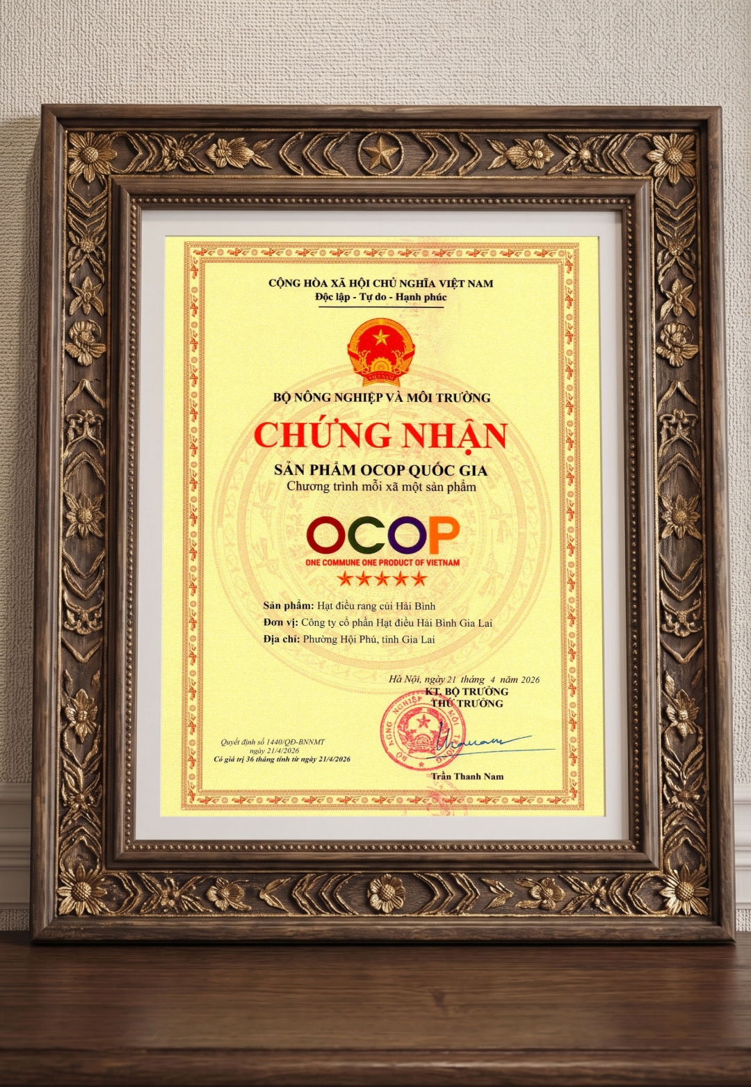 Trang chủ Tin tức & Sự kiện HẠT ĐIỀU HẢI BÌNH GIA LAI CHÍNH THỨC ĐẠT CHỨNG NHẬN OCOP 5 SAO QUỐC GIAHẠT ĐIỀU HẢI BÌNH GIA LAI CHÍNH THỨC ĐẠT CHỨNG NHẬN OCOP 5 SAO QUỐC GIACác tin khác[Hải Bình Chính thức] Ra mắt Mascot “A Điều” – Biểu tượng mới của Hạt điều Hải Bình 12:04 21-11-2025“A Điều” – linh vật mới của Hạt điều Hải Bình, mang tinh thần mộc mạc – ấm áp – chân thành của đất Gia Lai.Với nụ cười hiền, ánh mắt ...Thư mời tham gia gian hàng Foodexpo 2025 – Hạt điều Hải Bình 11:05 08-11-2025Hạt điều HẢI BÌNH GIA LAI trân trọng kính mời Quý Anh/Chị đến tham quan gian hàng của Hải Bình tại Hội chợ Triển lãm Quốc tế Công nghiệp Thực ...BÍ MẬT TỪ LỬA – GIỮ TRỌN VỊ NGỌT & BÙI CỦA HẠT ĐIỀU 04:58 12-08-2025Khám phá bí quyết hạt điều rang củi giữ trọn vị ngọt bùi, thơm ngon tự nhiên, an toàn và giàu dinh dưỡng, khó ai có thể quên.Giữ trọn vị điều – Giữ trọn chân thành cùng Hạt điều Hải Bình 02:31 05-07-2025Hạt điều Hải Bình rang củi truyền thống, không phụ gia, không chất bảo quản. Giòn thơm tự nhiên, an toàn sức khỏe, giữ trọn vị nguyên bản.Hạt điều Hải Bình – Có mặt tại GO!, WinMart, Mega Market với nhiều ưu đãi hấp dẫn! 10:40 04-07-2025Đừng quên Hạt điều Hải Bình có mặt tại GO!, WinMart, Mega Market và đang có nhiều chương trình hấp dẫn cuối tuần, giúp bạn tiện lợi hơn khi mua mà ...CHÚT ĐIỀU NHỎ - LÀM NGÀY DÀI BỖNG DỄ THƯƠNG 09:56 24-06-2025Hạt điều rang củi Hải Bình – giòn béo, tự nhiên, giúp cải thiện tâm trạng, bổ sung năng lượng và làm đẹp da mỗi ngày.Danh mục sản phẩmHạt Điều Rang Củi Túi GiấyHạt Điều Rang Củi Set Quà TặngHạt Điều Rang Củi Hộp NhựaHạt Điều Rang Củi Túi NhômHạt Điều Rang Củi Gói NhỏHạt điều tỏi ớt hũ nhựaHỗ trợ khách hàngSản Phẩm Đa DạngThanh Toán Linh HoạtVận Chuyển NhanhƯu đãi tốt